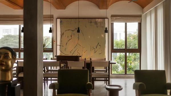 Arched openings introduce a softness that offsets the otherwise straightforward layout, giving the rooms a slightly old-world lilt. “There was never a moment where we said, ‘let’s make this look a certain way,’” Shetty reflects. “It was more about allowing the materials to settle into themselves—and letting the space feel like it had aged into its current state.” Hovering above it all is a canopy of rain trees, easily the café’s most compelling feature. Their shifting shadows move across tables...
