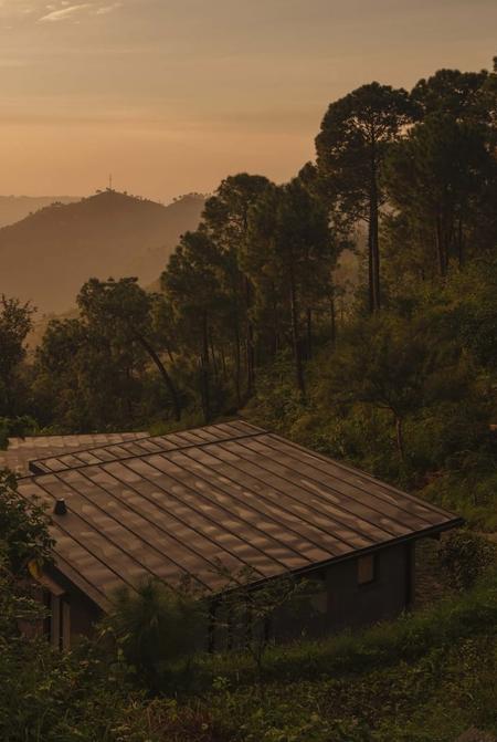 A decade from now, Amaya—a resort situated in a 25-acre private forest in the Himalayan state of Himachal Pradesh—will likely be imperceptible from the sky, courtesy of its patinated copper roofing that will camouflage against the treetops. Centuries from now, if left unused, the resort may well disappear into the earth. The self-sustaining property, designed by Indian architect Bijoy Jain of Studio Mumbai and Voon Wong of London-based Viewport Studio as an unobtrusive outgrowth of the surrounding pine forest, is a habitat of villas, farmlands, walking paths, and water-harvesting systems, spread across acres of pristine, reforested terraces.
