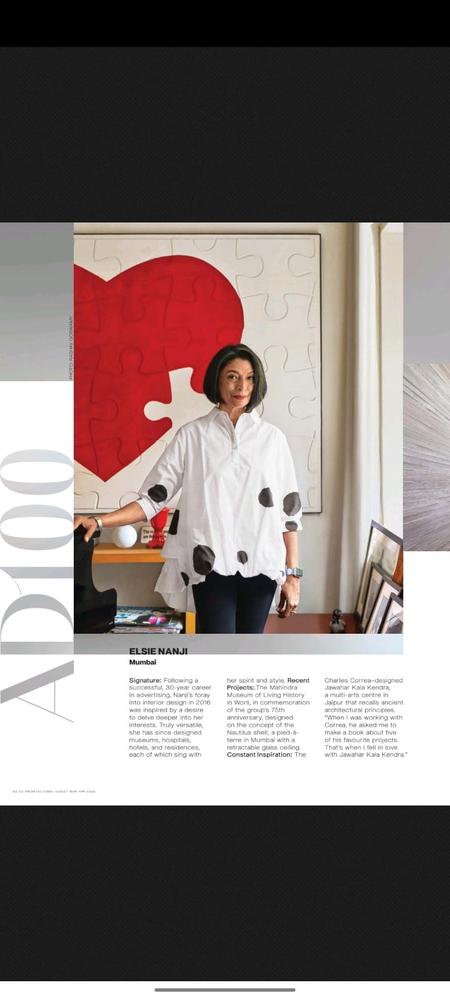 Architectural Digest • 15th April 2023 [Print] AD100, India, 2023 Coverage of 70 of the 100 profiles featured in this story.