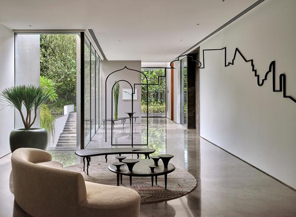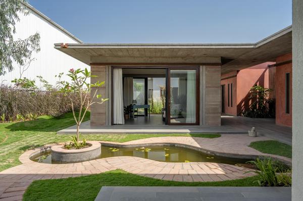 Two years ago, architects Saahil Parikh and Nupur Shah set foot on a plot of land in the Goan village of Agarvado — and were instantly captivated. “The land was completely untouched,” recalls Saahil. But it was equally wild. “Our first site visit took place during the monsoon, and the terrain was remarkably marshy. I remember struggling to walk across it. By the time we were done, our feet and shoes were caked in thick mud right up to our ankles. Cleaning up took some effort,” adds the co-founder of the Mumbai-based We Design Studio, who went on to clear not just his footwear, but, in time, the spectacular surrounding quagmire as well. Tucked away on a storybook estate spanning ten acres, the site lay cradled between the Chapora River and an expanse of mangroves, its surface dotted with three man-made salt pans. Completing the setting with a villa just as idyllic, then, was a challenge that called for sensitivity over spectacle.